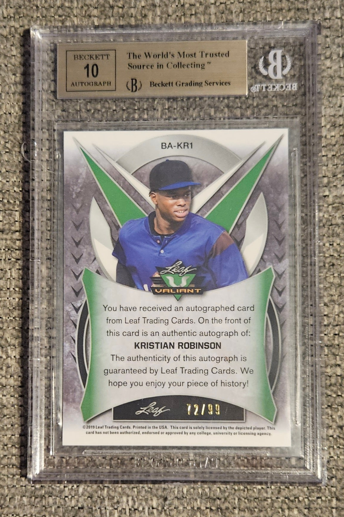 Leaf Valiant Kristian Robinson Autographed and Graded Card